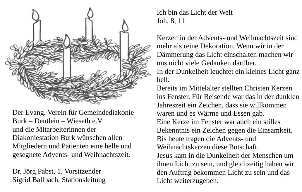 Sonntag, 7.12., 10 Uhr: in der Kirche ( mit Liveübertragung auf unserem YouTube-Kanal)